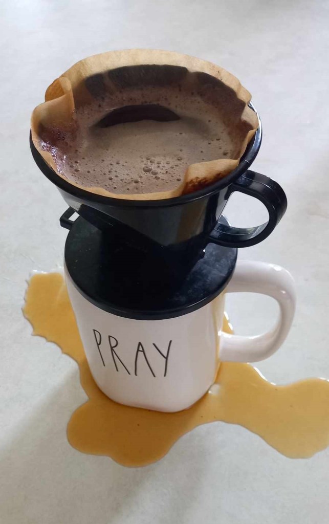My cup overflows with his blessings! Included in those blessings is his provision of joy. We just need to be open to it and let the Spirit pour it in. When it overflows, that joy can bless others too. You can notice the gilded clouds of sunrise and share the wonder with a friend. You delight in the abundance of fruit from your tree and share it with a neighbor. You find out your hibiscus bush is blooming and shout out in wonder. You see the cross-stitched cross your daughter made for you, now a precious encouragement by your desk, and feel gratitude. Joy! Even if it is not “shouted” vocally, your heart can leap and express the message.