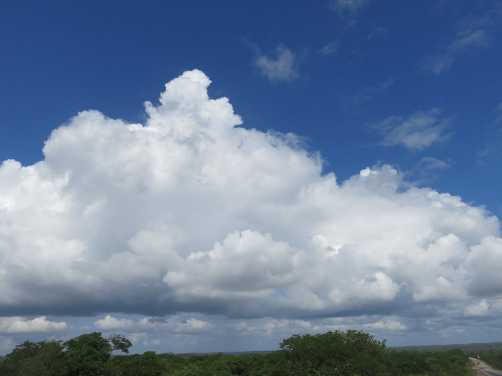 into the cloudy sky,